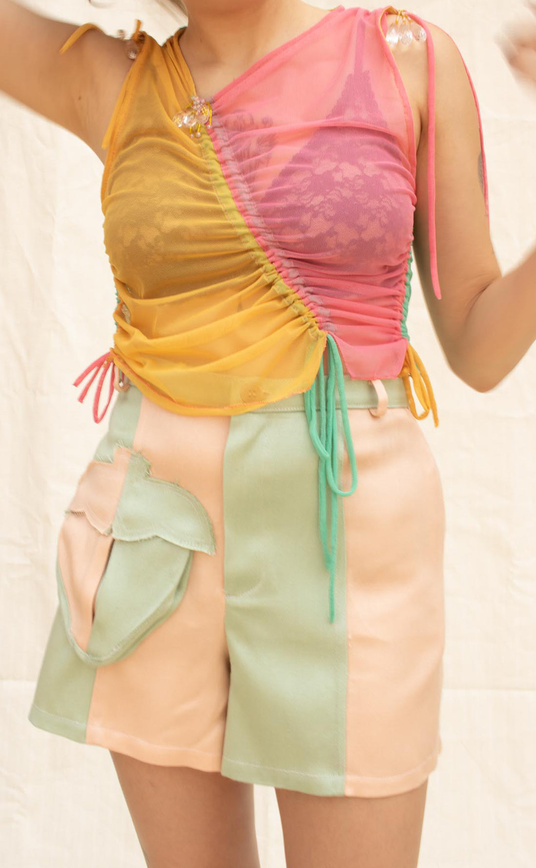 Shorts amplios tiro alto con pretina ajustada y bolsas invisibles en los costados