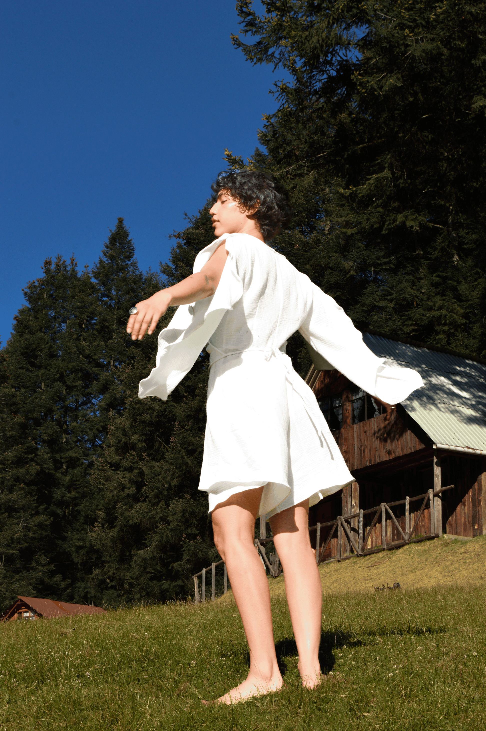 Enterizo largo bermuda, ajustable multifacético con mangas abiertas y amplias.